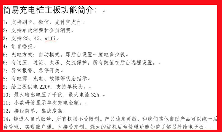 <span font-size:14px;"="" style="margin: 0px; padding: 0px; border: 0px; outline: 0px;">宇脉新品研发——自助充电桩主板,1020-05型,单次消费、会员消费、微信、刷卡、支付宝支付多功能,自主选择,自由设置参数,权限自由,主控设备自助研发生产,多功能自助设备,支持定制开发,主控设备不定期的升级,享受厂家免费升级功能,宇脉自助设备支持一卡通,统一后台管理。自助充电桩主板功能看图片了解,欢迎来电咨询:18520500709/400-1898-020