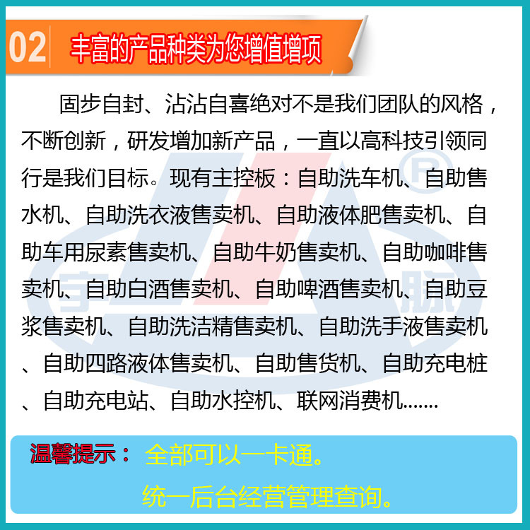 宇脉MCU单片机厂家,主控设备自助研发生产,联网多功能自助设备,支持定制开发,真正拥有自己的研发团队。多种支付方式如:投币、刷卡、微信、支付宝等方式,宇脉厂家自主研发的自助系统,系统会不定期的升级, 提供免费升级功能,让您的设备不落后于时代,社会在进步, 我们也在进步。我们坚守着“只有客户好,公司才能发展得更好”的理念,只要您相信我们,我们愿与您共同成就更好的未来,共同成长,共同发展,携手打造一体化智能智慧社区。社区一卡通,让您拥有大数据管理!欢迎来电咨询:18520500709/400-1898-020