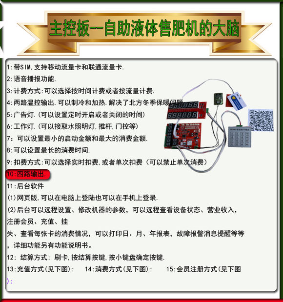 宇脉自助液体肥售卖机主板,自主研发:(实图展示)欢迎来电咨询:18520500709/400-1898-020
